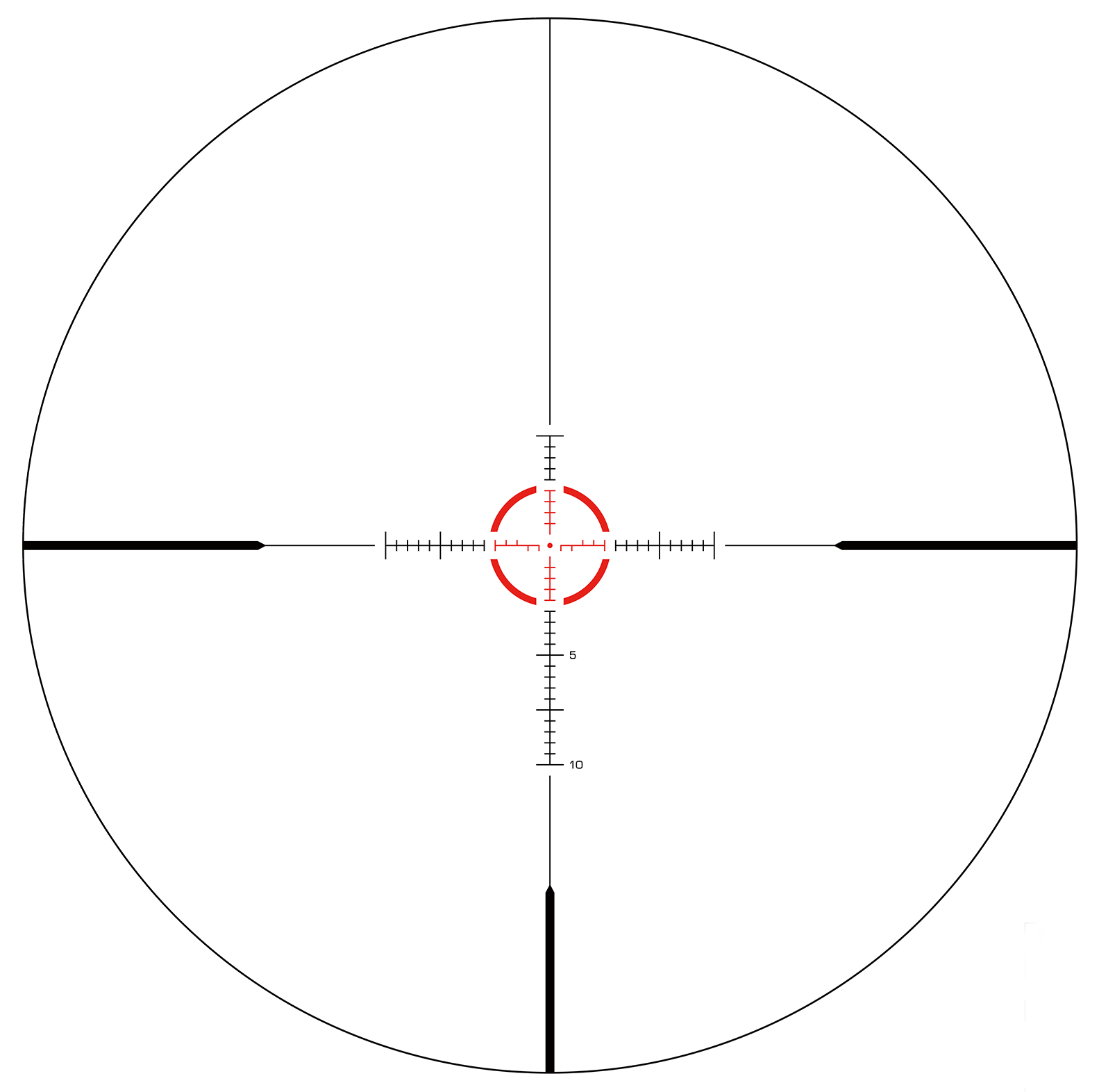 For shooters using calibers other than 5.56 NATO or .308 Win, the Guerrilla Dot MOA Long Reticle provides versatility. It features a full 30 MOA vertical holdover ladder, allowing you to easily find the required holdovers for your firearm.