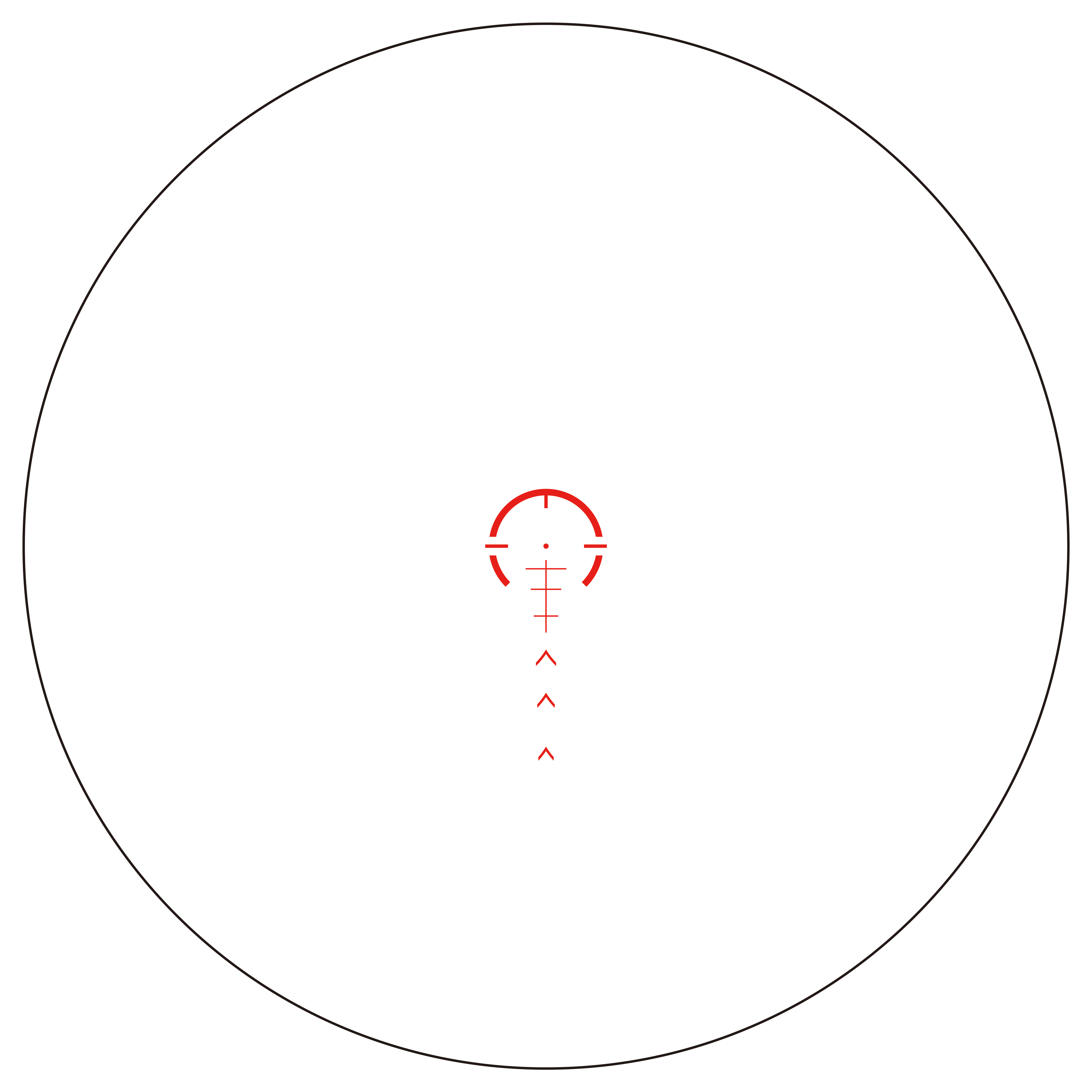 The Guerrilla Dot MIL Long is available in all of our magnification ranges, and, like the MOA, it is compatible with a variety of calibers. This option is our first partially illuminated LPVO reticle, offering a more reflex-style reticle at 1x while still maintaining the 10 MIL tree for long-range holds.